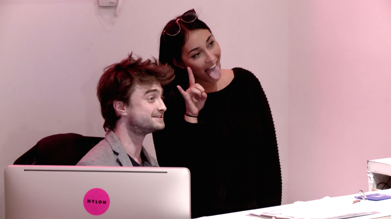 Radcliffe took over for Lauren Adler, Nylon’s receptionist, while she hid in a back room for an hour. Predictably, lots of people recognized him and suddenly found themselves needing things from the receptionist’s desk. But a few–and there’s always a few–didn’t recognize him, and just went about their day like nothing was different.