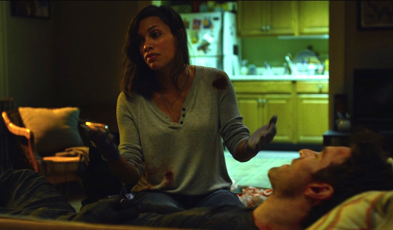 She tries to treat him and starts calling 911, but he stops her and tells her not to take him to the hospital. He tries to leave but winds up… less than successful.