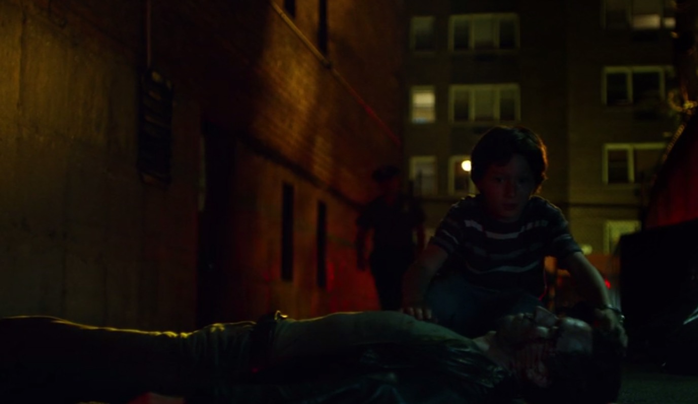 While Matt’s conked out on the floor, we get a flashback of young Matt (when he could still see), watching his dad lose a boxing match. He comes home and Matt patches him up with some stitches (THE PARALLELS), and the elder Murdock reveals he still made a good amount of money despite losing the fight—this first hint that he throws matches for money.