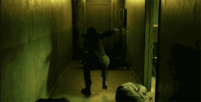 In the present, the kidnapped child screams for his father in a building full of thugs. Daredevil shows up, and all Hell breaks loose. Seriously. A brutal fight scene erupts which takes place mostly in a tiny hallway where Matt beats the snot out of henchmen—repeatedly. It’s all in one, brutally long shot where they keep getting up and coming back for more, and Matt keeps taking them down. This goes on for several minutes, really puts on display the brutality of what it takes to beat someone unconscious in a way a lot of superhero shows won’t, and ends with more trademark DGAF.