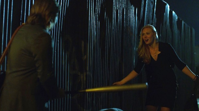 After sharing information and Karen’s awkward realization that Foggy wasn’t joking about that whole date thing, Karen leaves and finds she was tailed by the guys Mrs. C just told her about. They grab her, and she takes out one of them with a swift knee in the pants, but the other guy throws her to the ground just before Foggy shows up to help her out.