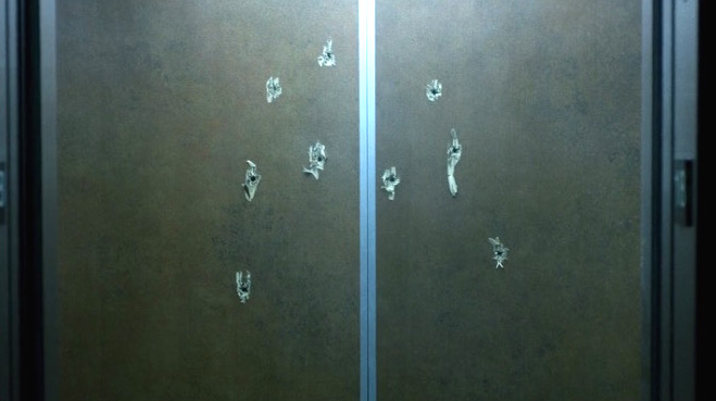 “Stick” starts with this guy running down a whole bunch of stairs to grab a gun to protect himself from an unknown threat. Or maybe he’s just really into fitness and is trying to Paul Bunyan the elevator, which he points his gun at as it approaches. (Spoiler: Paul Bunyan loses, dude, btw.)