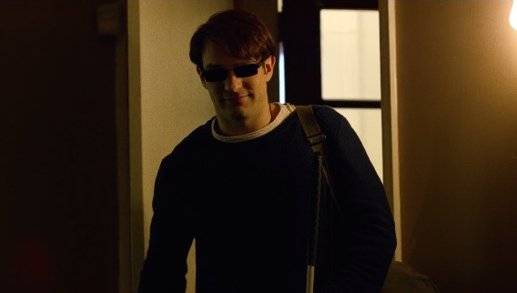 In one last flashback, Foggy and Matt bond over a lie Matt’s probably telling about falling while taking out the trash, and they clink over the beginnings of their law practice/their friendship.