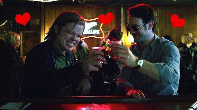 Then there’s a loooooong Matt and Foggy buddy flashback where they drunkenly stumble around their college campus and say dumb college guy things, and they basically plan to be BFFs.