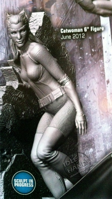 The world was clamoring for every set photo they could get their hands on from The Dark Knight Rises to see just what Anne Hathaway looked like in the Catwoman costume, when all they had to do was wait for the tie-in toys to be revealed. Thanks to a blogger taking a few shots of a preview magazine, we’ve got a really good look at TDKR’s Catwoman. And Bane and Batman to boot.