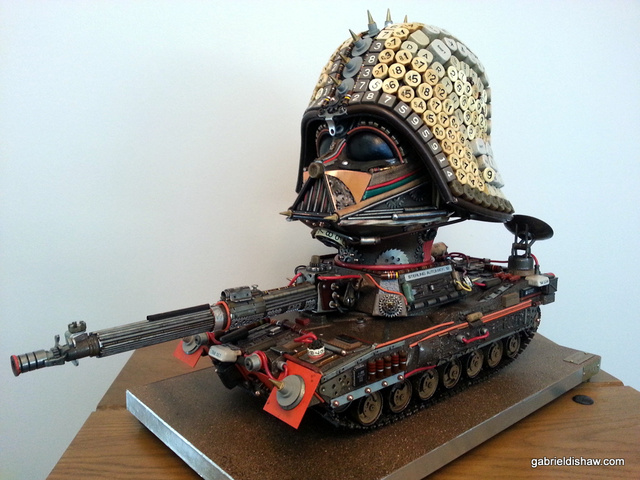 Why not, I say! Why not? Check out Gabriel Dishaw’s website for more fantastical Star Wars sculptures created out of old tech.