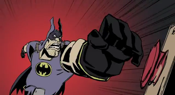 We’d chalk it up to Plastic Man loony-ness, but it’s not in the same animation style. Anybody know? Here’s the whole trailer itself: