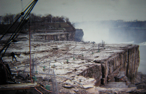 The pictures come from 35mm slides taken by Glasson’s in-laws and can be found among several pictures of the Falls in its natural state. (Can something be said for the utter disappointment of showing up at Niagara Falls only to find them completely dry, but then for the utter amazement at showing up at Niagara Falls to find them completely dry?)