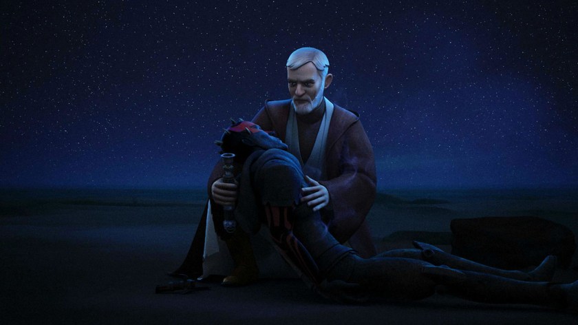 Even when Maul hunts him down on Tatooine decades later, Kenobi holds his longtime adversary in his arms as Maul dies and gives him peace knowing Luke is the Chosen One and will be the end of Palpatine (… I mean, he put him out of commission for 3 decades. That has to count for something.)