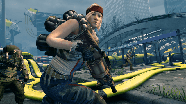 If you have played Brink (the parkour of FPS shooters) before then you may have already found several similarities between Dirty Bomb and Brink. The biggest resemblance based on face value is the style of the graphics. The low poly mesh applied to the environment and characters in Brink is also visually implemented in Dirty Bomb. But by personal taste, I find the color palette and low-poly models in Dirty Bomb slightly more appealing. “Besides the graphics, the common denominator for their likeness is obvious: both games are developed by Splash Damage, the same studio that developed Wolfenstein: Enemy Territory, Enemy Territory: Quake Wars, Brink, and helped developed DOOM 3‘s multiplayer maps component.”
