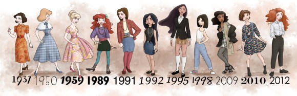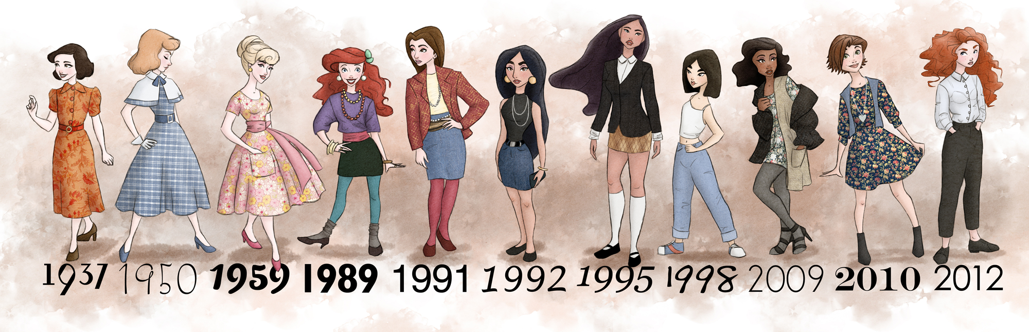Disney Princesses In the Fashions of the Years Their Films Came Out