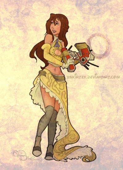 And what with the fanart trend of giving reinterpreting Disney princesses, and the existing presence of the official Final Fantasy/Disney crossover games Kingdom Hearts, it shouldn’t surprise anyone that xsKiRtZx’s drawings of Disney princesses and other lead female characters as Final Fantasy X-2 classes are a pretty cool combination.