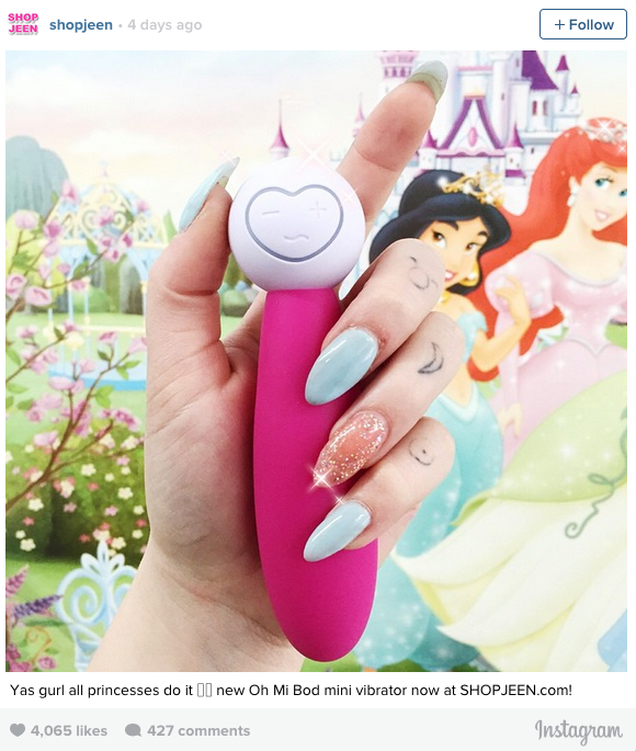 I’m not clear who online retailer Shop Jeen‘s target demographic is (Ethan Hawke from Reality Bites and everyone who went to see Ouija, maybe? Seriously, that is one weird website) but the company’s Instagram from earlier this week featuring this $68 “Love Discovery Mini Vibrator” has been gaining a lot of attention: