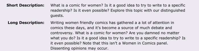 [UPDATED] Dissenting Opinions May Occur: Some Thoughts on Yesterday’s Troubling “Writing Women Friendly Comics” Panel