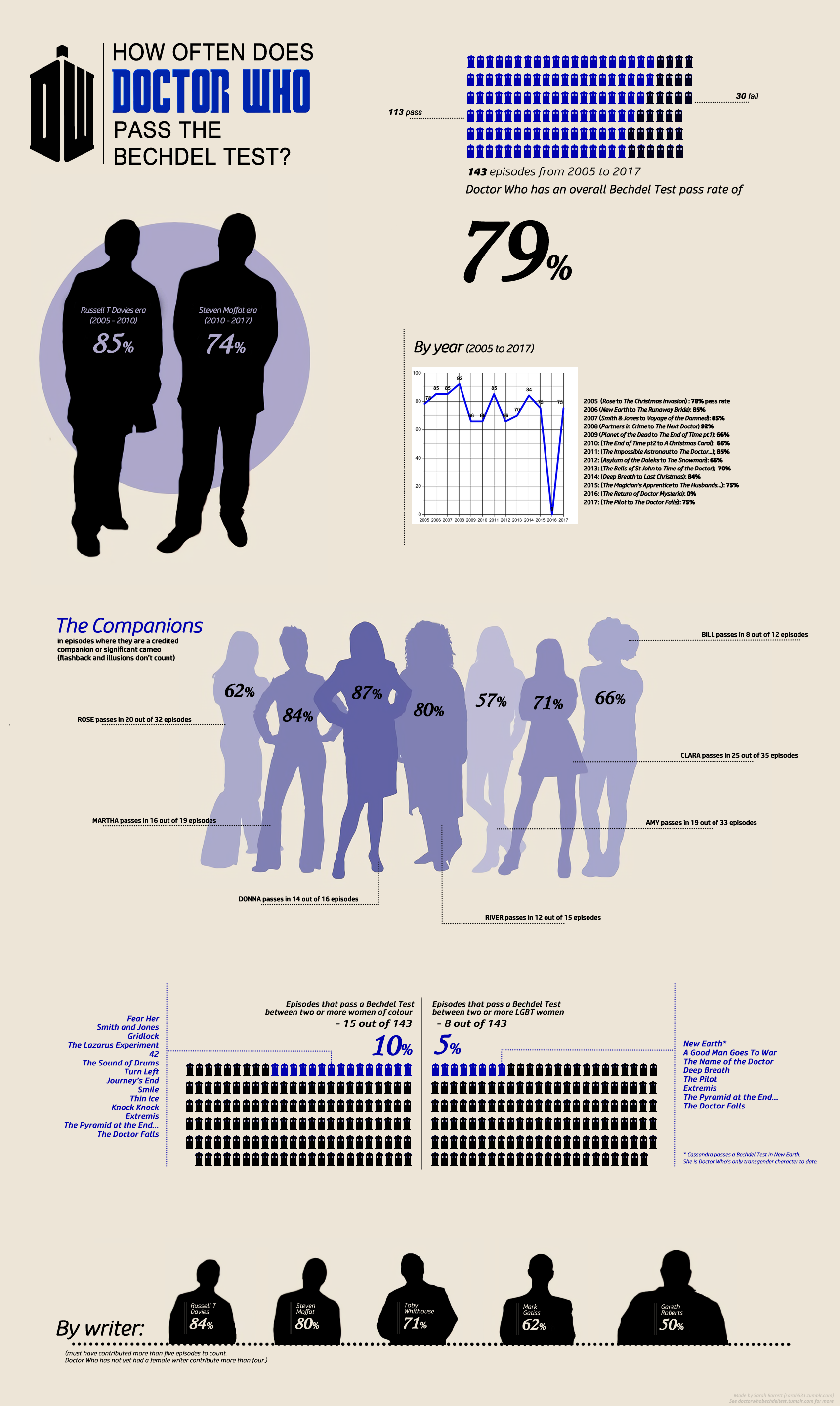 - This would have been much, much harder to do without help from the followers of the Doctor Who Bechdel Test blog, who have been fantastic about going through my maths and highlighting things I’d missed.