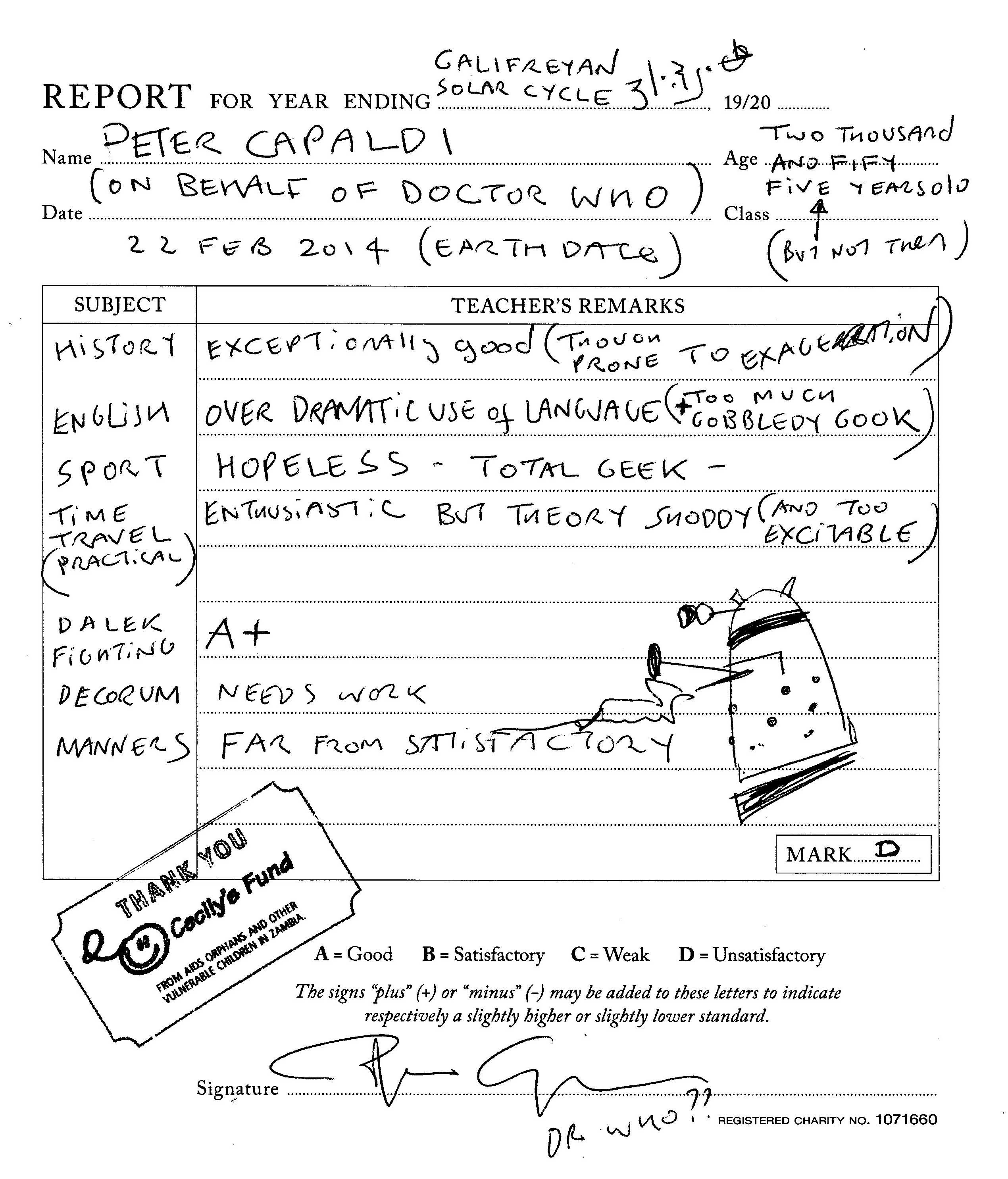 Doctor Who’s Peter Capaldi Gives The Doctor A School Report Card For Charity