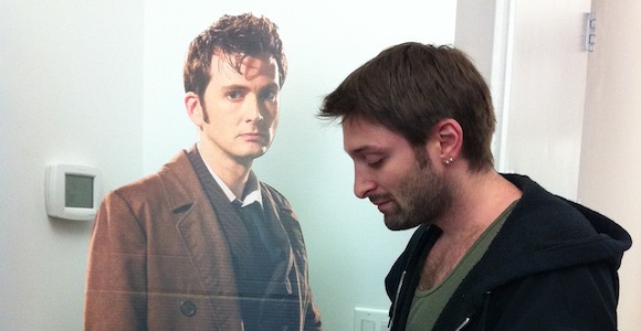 James and the Doctor had to take a moment to compose themselves after the confirmed news that the seventh season of Doctor Who will be delayed until fall 2012.