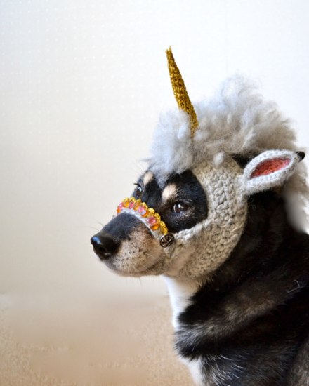 What’s Better Than a Dog? A Dog Wearing a Crocheted Unicorn Mask.
