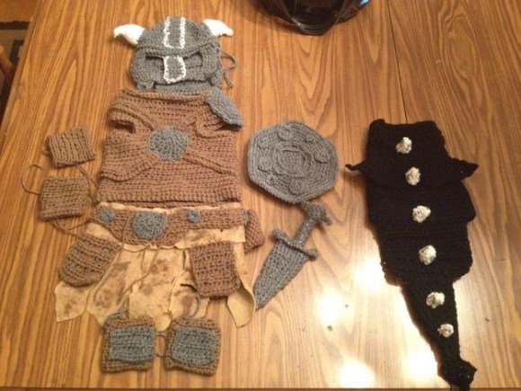 I’ll be honest: I don’t play video games, and all I know about Skyrim is that it came out recently. Or a version of it came out recently. Really, I have no idea. If it’s something you enjoy, all power to you! I would never stand in your way. However, while I have a neutral opinion about Skyrim, something has prevented me from ever having a negative opinion about it. And it’s handmade crochet costumes for dogs. Adorable crochet costumes for adorable dogs.