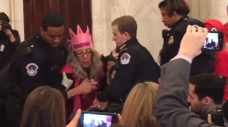 Fairooz faces charges of unlawful conduct after she loudly laughed when Senator Richard Shelby (R-AL) stated that Sessions had a record of “treating all Americans equally under the law.” As CNN writes, Fairooz’s seconds-long laugh caused no disturbance to Shelby’s speech, and the senator continued speaking without even acknowledging the “interruption.” Nevertheless, the 61-year-old Fairooz was removed from the room and charged with “disorderly and disruptive conduct.” Once she was placed under arrest, Fairooz began loudly protesting her treatment.