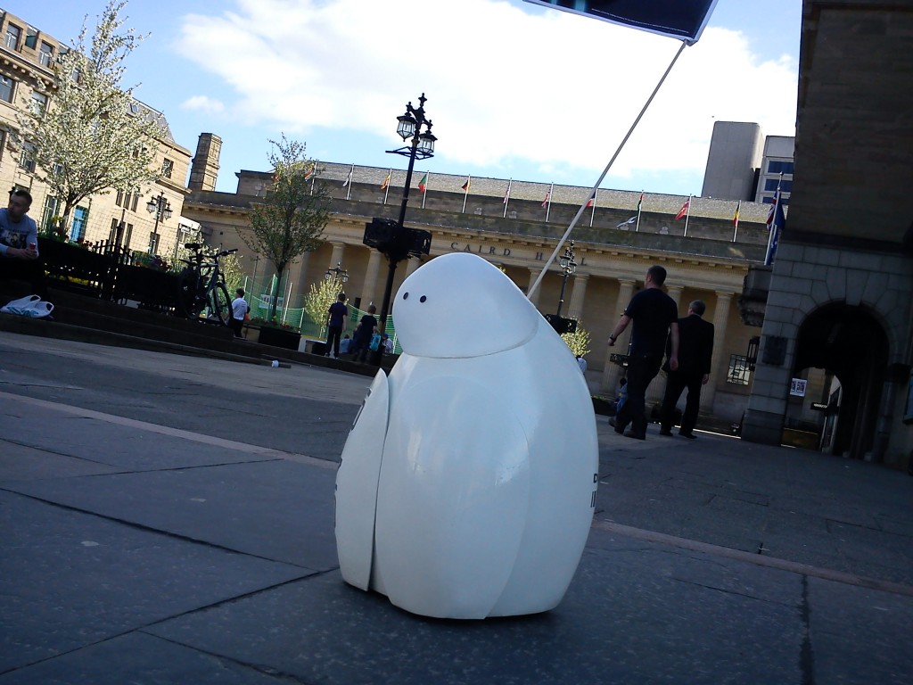 Adorable Robot Procures Pound-coins From Puzzled Passersby