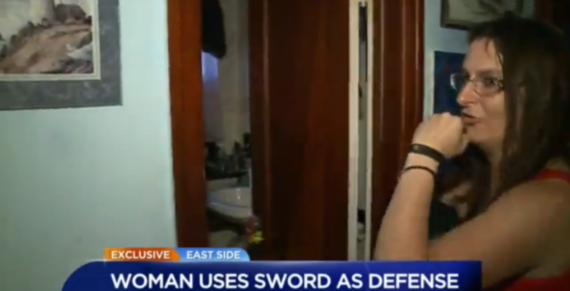 According to the Indianapolis Star, Dolley held the intruder at sword-point in her bedroom until police arrived. Dolley told CBS 4 Indy of her handy ninjato, “It is 440C stainless steel, it has an edge and it will cut. If he would have behaved in a slightly different manner he would not have gotten out of here alive.”