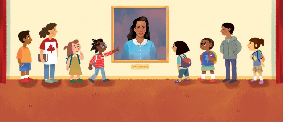 Other panels from the Google Doodle, which you can check out here, portray Desmond’s many amazing accomplishments. As a businesswoman, she trained outside of Halifax (where she was not allowed to train), opened her own salon, started her own line of beauty products, and even opened her own beauty school so other black women could learn. The final image is that of her portrait in the historic ballroom in Government House, installed in 2010.