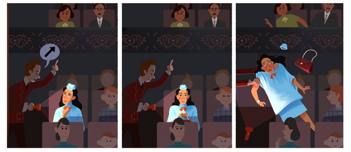 Today’s Google Doodle from Canada celebrates Viola Desmond’s 104th birthday by telling the story of her life through ten beautifully illustrated panels, from her beginnings as a child who saw little to no hair or skin-care being made for black women, to ground-breaking beautician, and to civil rights icon after she refused to move out of her seat at the Roseland Film Theatre in 1946.