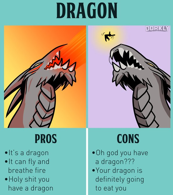Wouldn’t it be cool to own a dragon? Well duh, of course it would be. It’s a dragon. But as Dorkly notes in this new comic, sometimes fictional pets are like communism: a really good idea on paper, but then you try it out in real life and it sets fire to your belongings and all the surrounding villages. Wait, communism did that too, right?