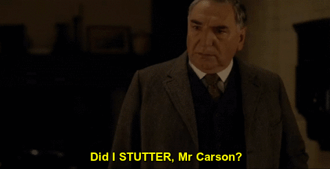 Back at Downton, Carson is putting the heat on Barrow to get a new job. It’s not even as though he’s saying, “So Barrow, I’ve heard you’re looking for a new job. How’s that going?” iIt’s quite literally in-your-face, “Are you employed elsewhere yet because I literally cannot wait for you to leave.”