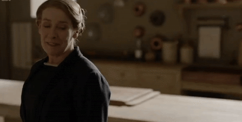 The struggle is REAL for Carson; he is destroying the entire house trying to cook, and Mrs. Hughes-Carson is lovin’ every damn minute of it. And when he presents the sorry supper?