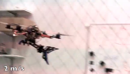 On hearing yesterday’s news that Carnegie Mellon University had developed a robot that turns into a tank, one of my fellow Geekosystem editors pointed out that at some point, we’re just asking for a violent robot uprising. He’s not wrong. I can’t imagine my co-worker is going to be exactly delighted, then, by the University of Pennsylvania’s newest robotic offering, a quadcopter drone equipped with a mechanical talon that allows it to snatch prey from the sky like a robotic eagle. While clearly terrifying, it’s also pretty awesome, and you can get a look at in action below.