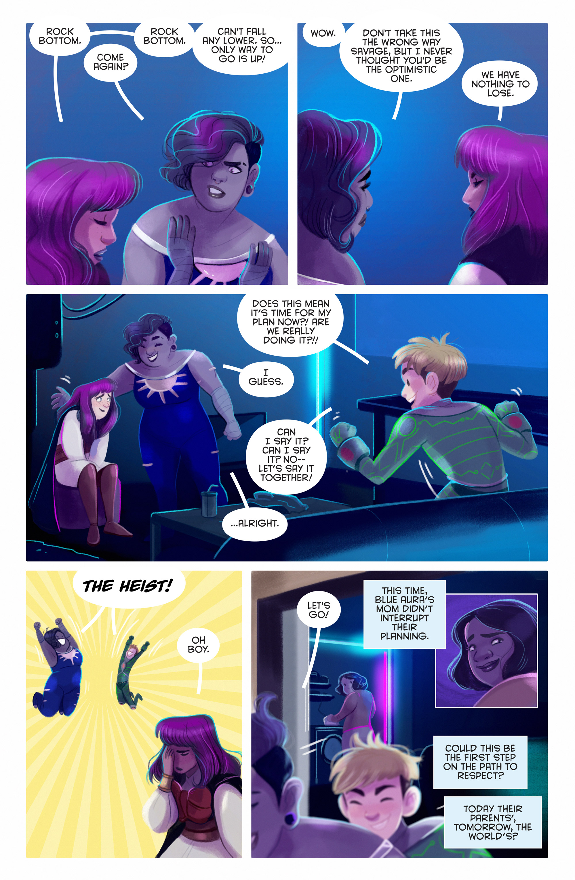 In the following preview pages, the kids realize just how alone in things they really are, and that they’re going to have to try and do things differently if they expect to actually be able to help their city and earn any kind of respect.