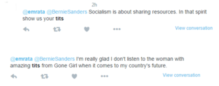 The responses Ratajkowski received to her speech are by no means unique–women on both sides of the political divide have faced gender-based harassment for sharing their opinions about the candidates online. But it is upsetting to note how many of the remarks directed at Ratajkowski reference her performances where she’s appeared nude.