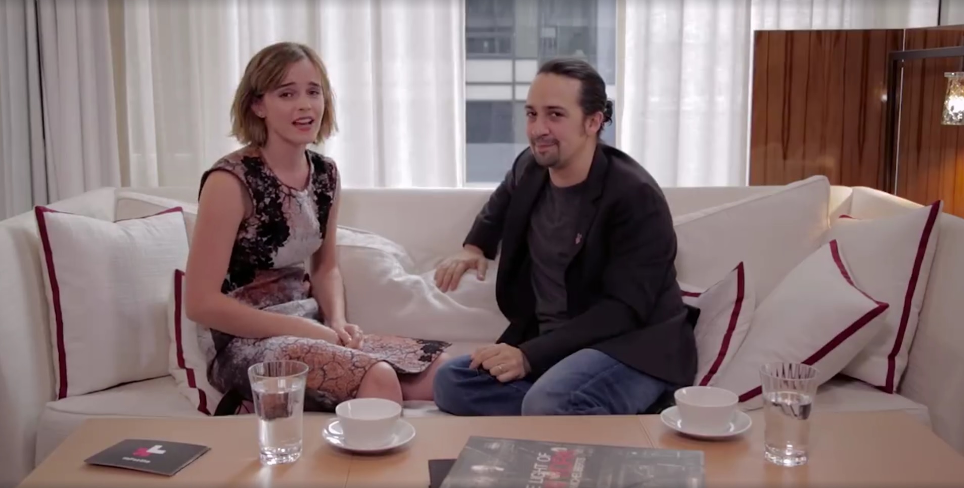 In an awesome video interview for the UN Women’s campaign HeForShe, Emma Watson talks to Lin-Manuel Miranda about feminism…by beatboxing to his freestyle verse!