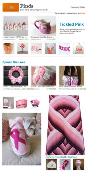 As you may already know, October is National Breast Cancer Awareness Month. Lots of different companies and organizations have projects to raise money for various charities but a recent move by Etsy has raised some eyebrows. They sent out an email with the phrase “Show your love to the women in your life with Breast Cancer Awareness Month” but a blogger realized very few of the items listed actually supported a breast cancer charity.