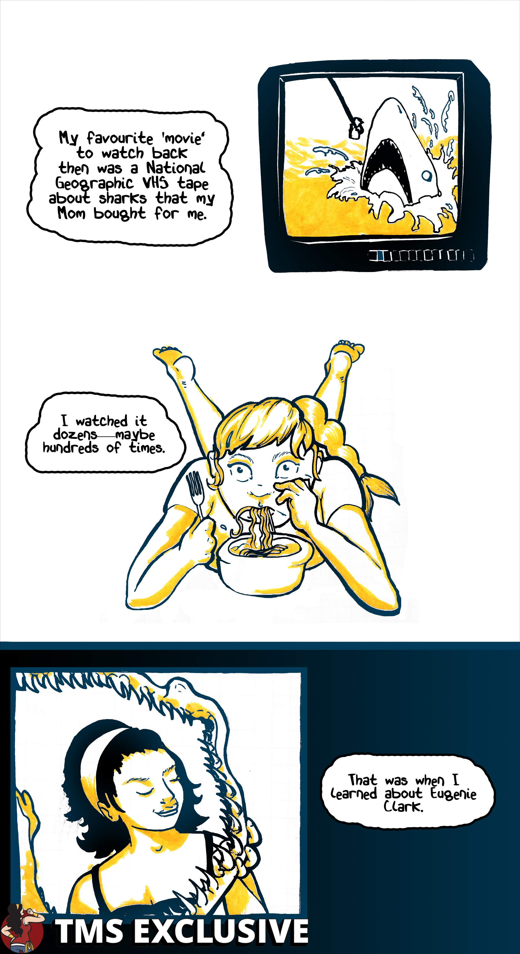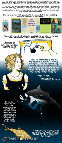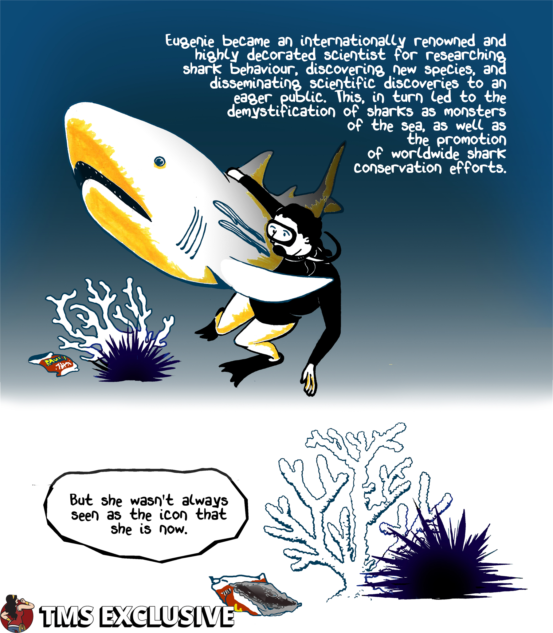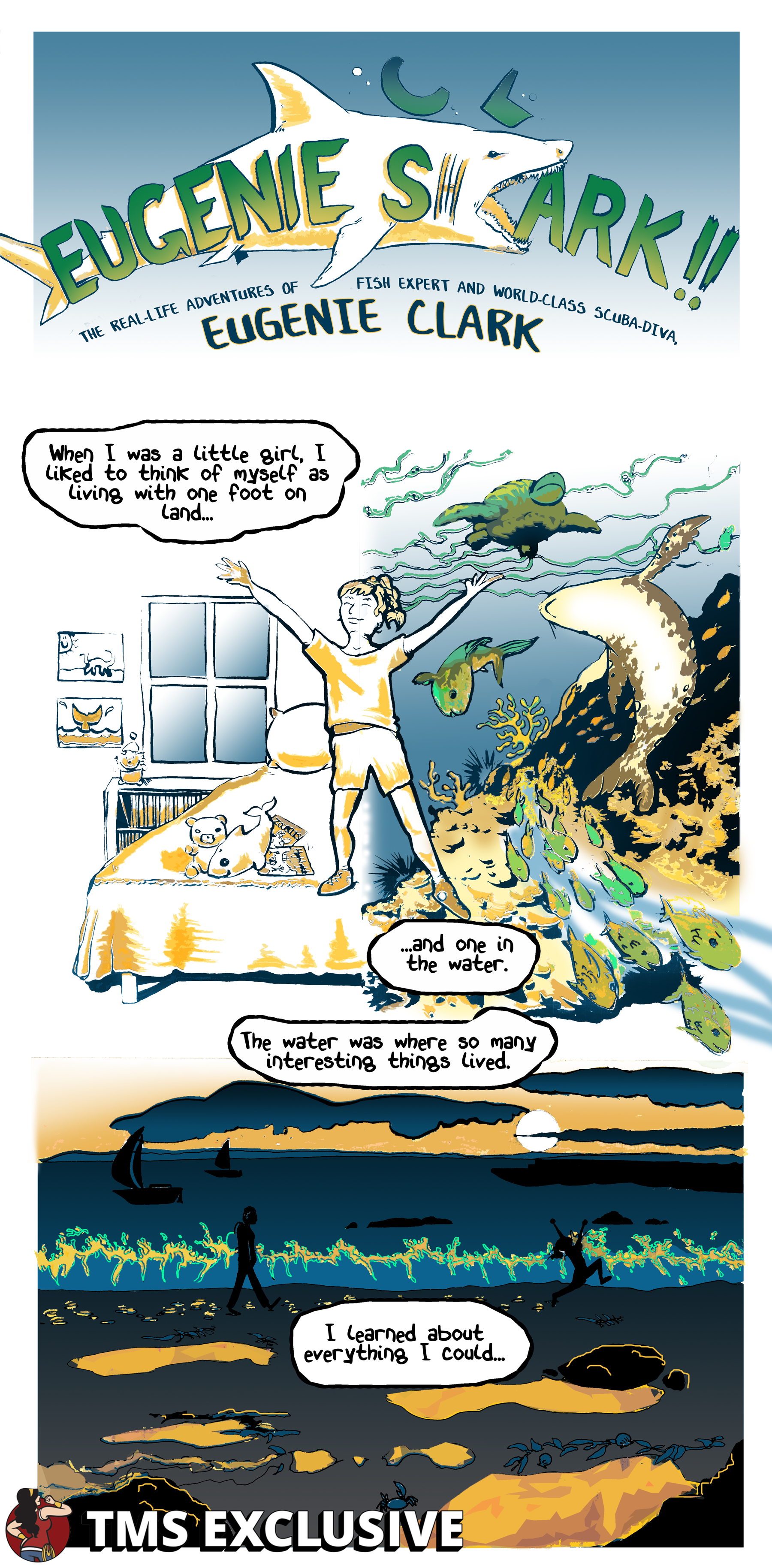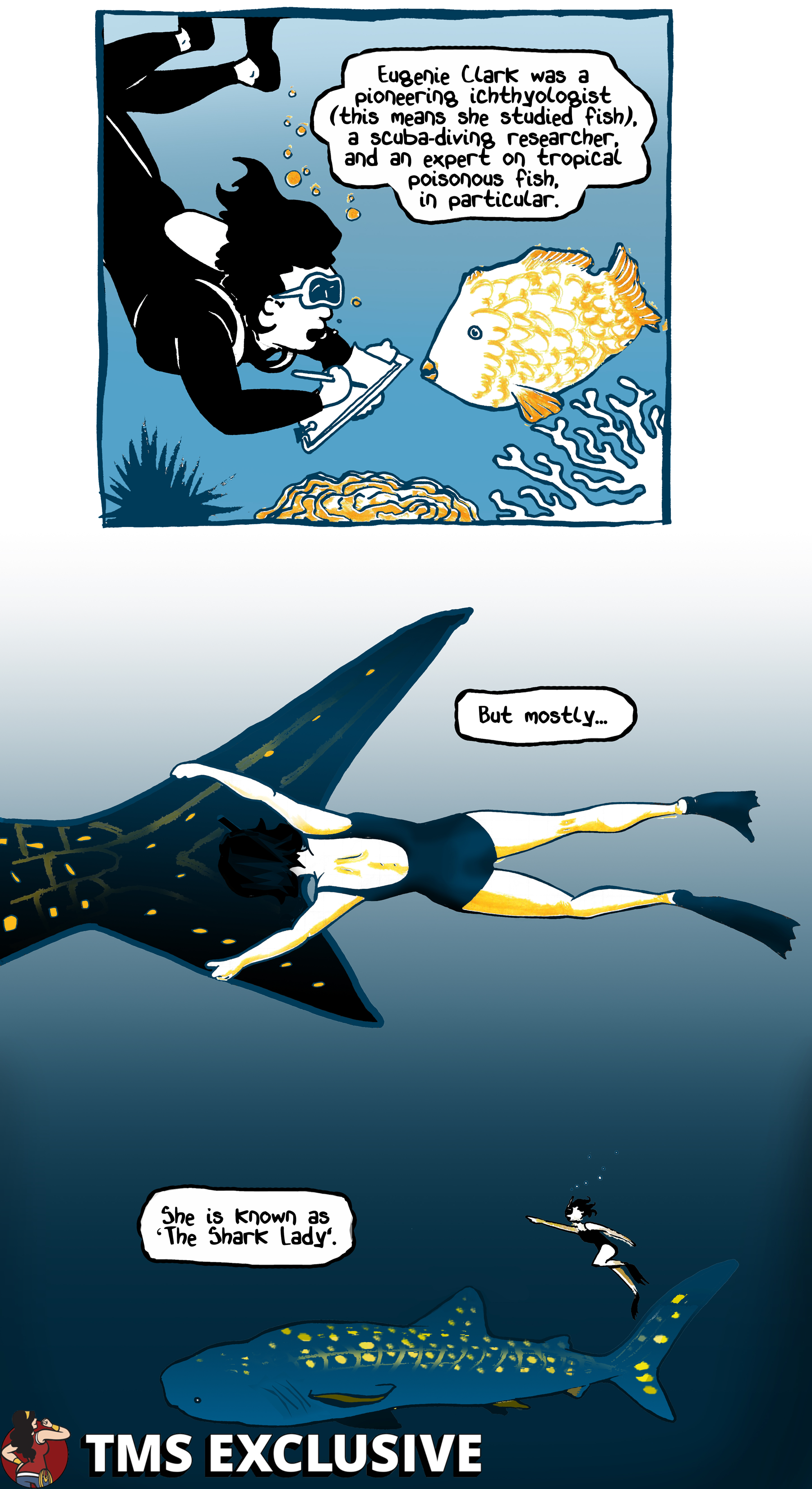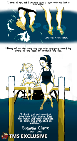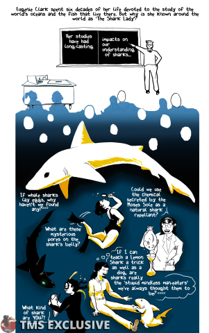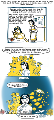[Editor’s Note: The Mary Sue is extremely pumped to present Eugenie Shark, a webcomic by Nicole Marie Burton about Japanese-American ichthyologist Eugenie Clark. In Burton’s words, Clark was “a pioneer for both women in STEM and the study of marine life, particularly sharks.” We hope you enjoy!]