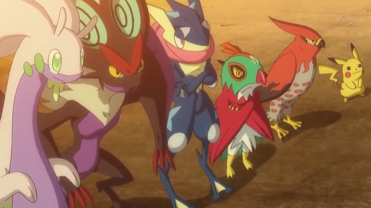 - Greninja: Ash may not have caught a Pokémon that could officially Mega Evolve in Kalos, but Ash’s bond with his Greninja was so strong that they managed to unlock their unique version of Mega Evolution during battle, otherwise known as the Bond Phenomenon. After defeating Team Flare, Ash and Greninja parted ways, but not forever.