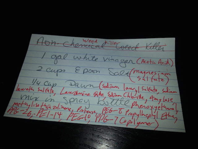 A recipe for “non-chemical weed killer” is making its way around the Internet and real world. It even made its way to my refrigerator somehow. Being the science-minded person I am, I fixed it.