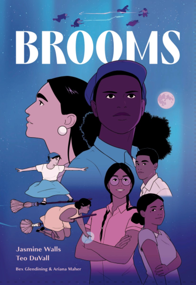 Thanks to this incredible community effort, Levine Querido is continuing to publish queer books—including the witchy graphic novel Brooms, written by Jasmine Walls, illustrated by Teo DuVall, colored by Bex Glendining, and lettered by Ariana Maher.