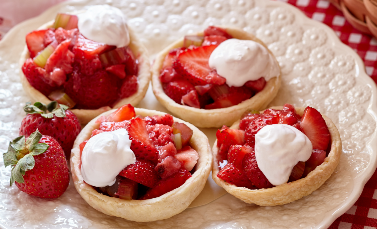 This year, I fell head-over-heels in love with the Oklahoma! Broadway revival, a sexy, stunning update to the longtime classic. In the show, which I saw too many times for my bank account, an auction of ladies’ prepared picnic hampers becomes a dramatic show-down. The auction, ostensibly to benefit the schoolhouse, morphs into the tense turning point face-off between hero Curly and antagonist Jud Fry, both of whom are vying for the lovely Laurey’s picnic hamper. Laurey had baked gooseberry tarts, and in Break An Egg, you’ll find a yummy tart recipe—substituting strawberries and rhubarb for gooseberries, which may be harder to track down.