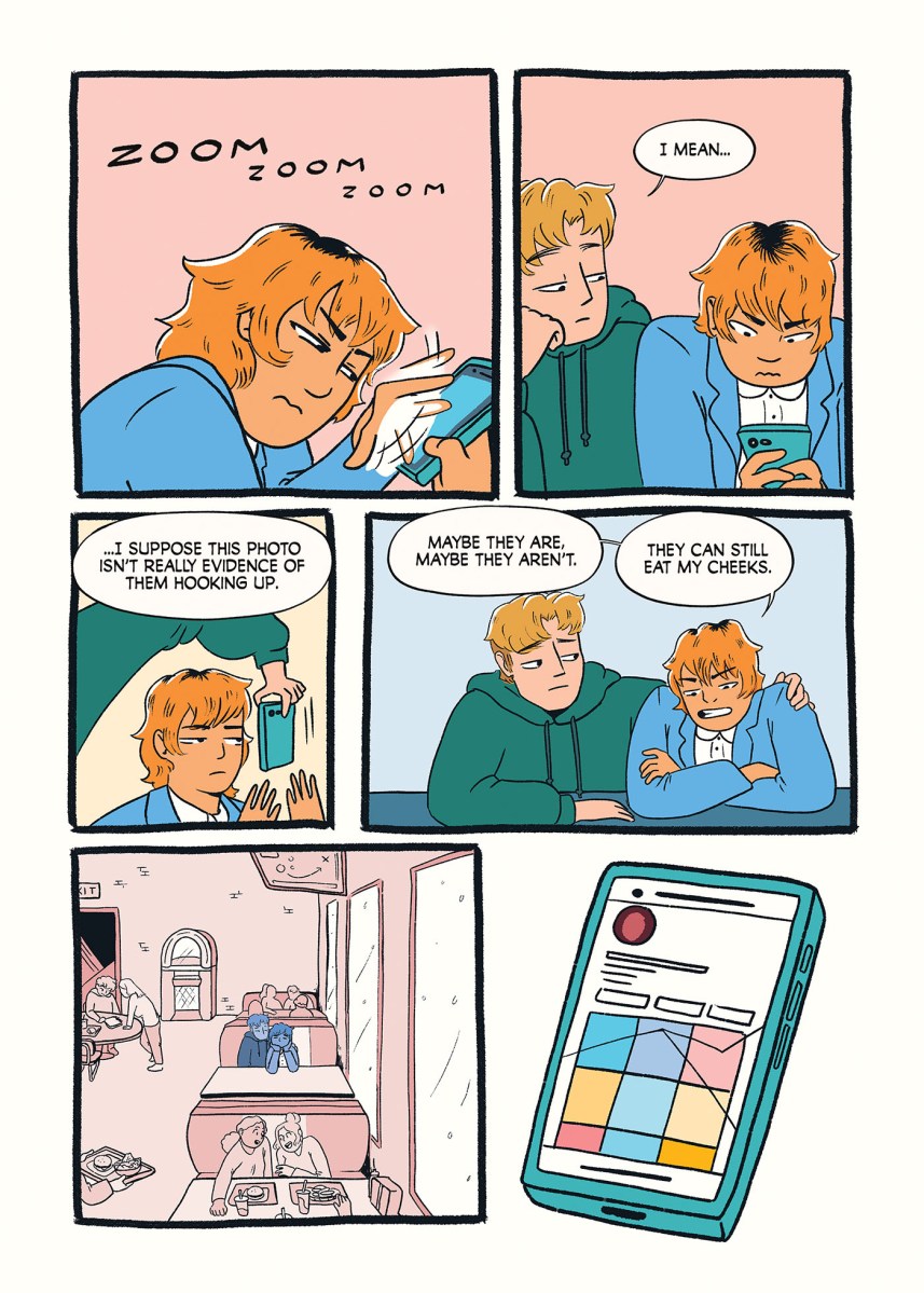 Based on Strapp’s cartooning style, the description, and the preview pages, How Could You seems perfect for fans of Alice Oseman’s Heartstopper; Mariko Tamaki and Rosemary Valero-O’Connell’s Laura Dean Keeps Breaking Up with Me; Tamaki and Jillian Tamaki’s Roaming (one of our best graphic novels of 2023); and John Allison, Max Sarin, Lissa Treiman, Whitney Cogar, and Jim Campbell’s Giant Days.