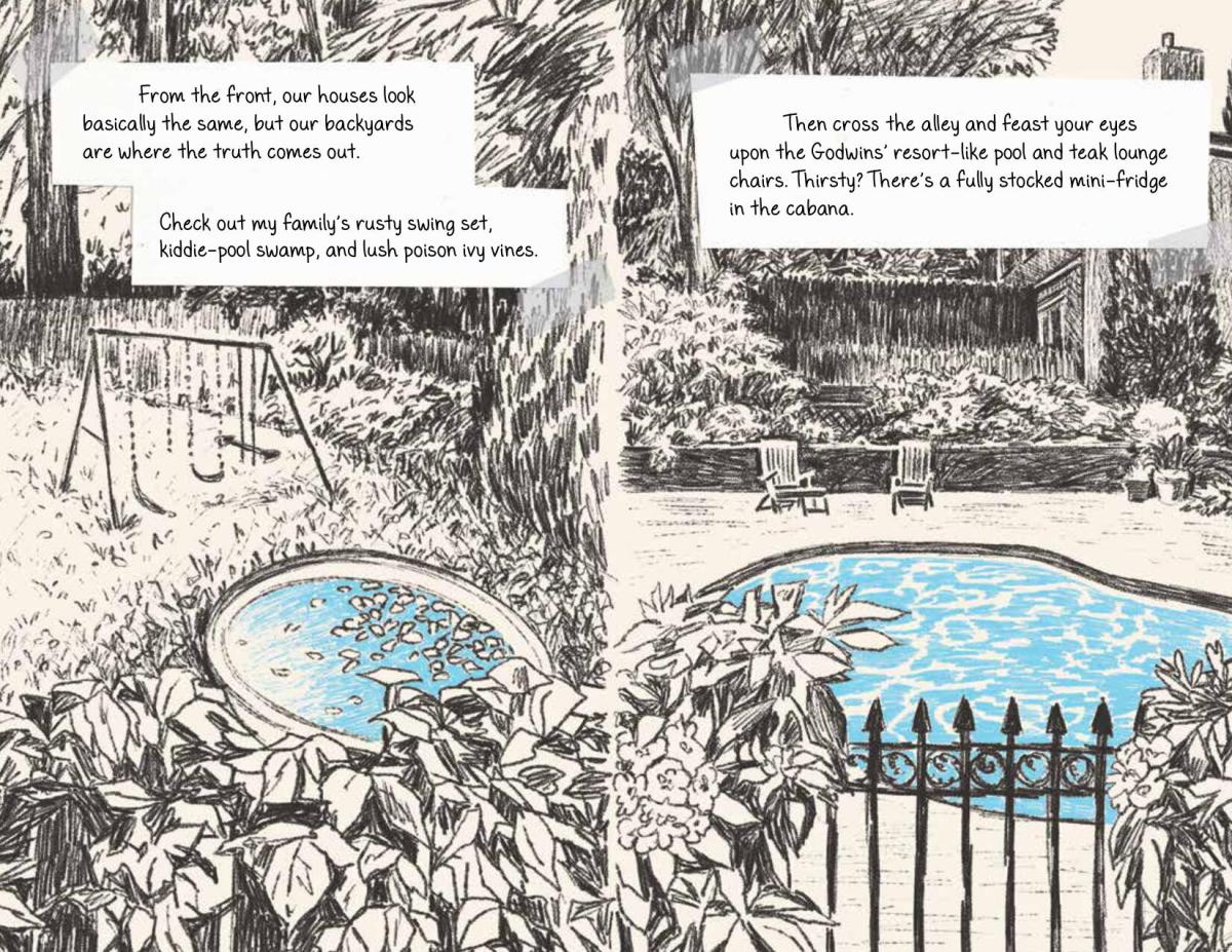 Set in 1966, the story of high school junior Christine begins with her begrudgingly writing a list of resolutions a few days after New Year’s. While she thinks it’s corny, she feels the need to manifest her desires in the journal. These desires are the very human aspirations to be loved and admired. However, the emotions are just very heightened due to teenage angst. This story documents her first love, grief, betrayal, and the development of her voice as an artist. The art isn’t just a few illustrations in a prose novel, but the graphic novel is constructed like a journal/diary.