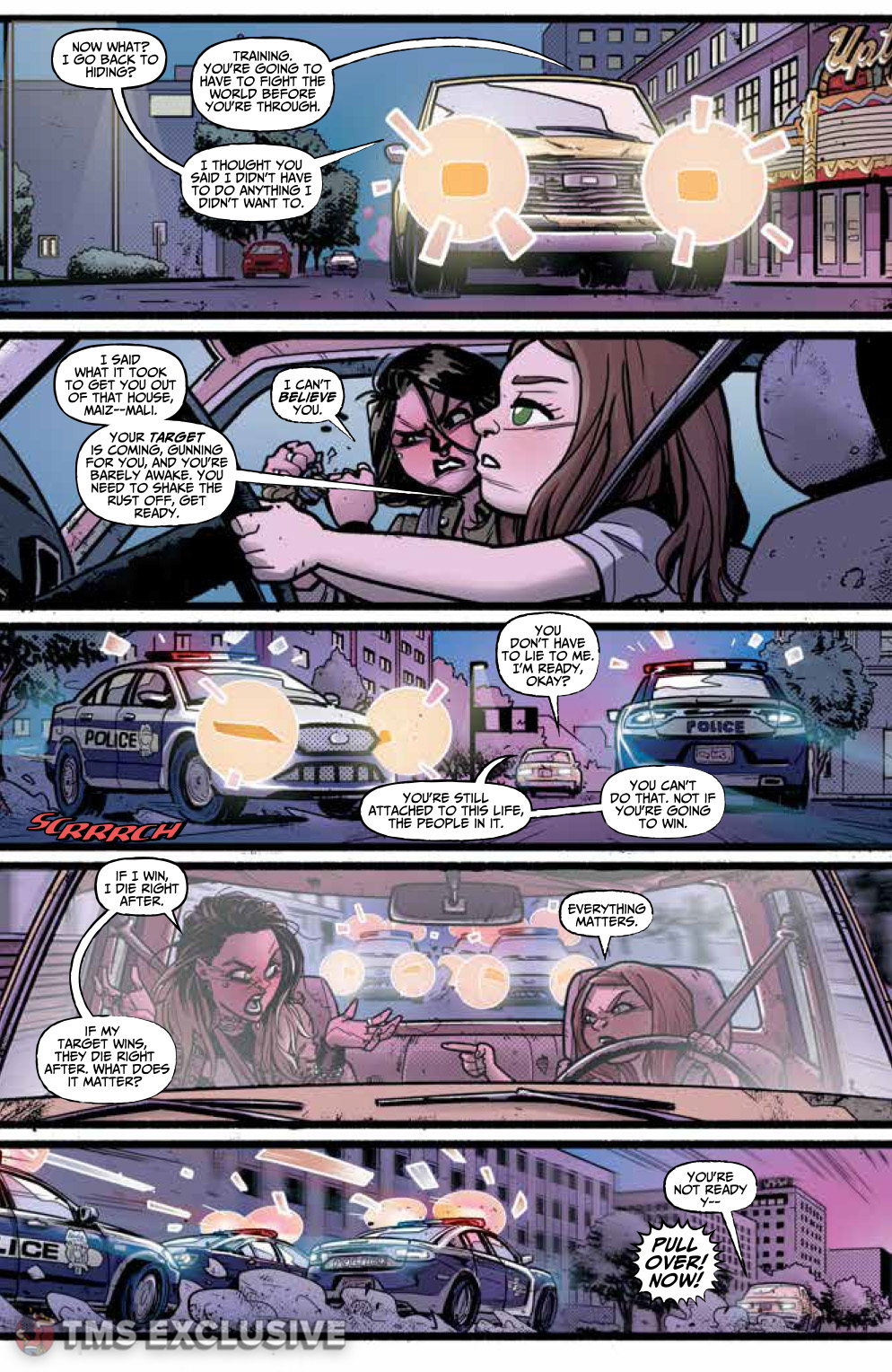We’ve got a rad new exclusive preview of BOOM! Studios’ Welcome Back. The premise of this four issue miniseries revolves around two “Sequels,” Mali and Tessa, women who are constantly locked in war with each other. The catch is, they keep reincarnating, so their war lasts throughout time. It’s a clever idea, and frankly, the art is pretty fantastic. If you haven’t been reading, then good news: this is only its second issue.