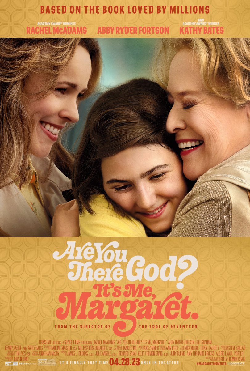 The synopsis for the film is as follows: “For over fifty years, Judy Blume’s classic Are You There God? It’s Me, Margaret. has connected with readers through its relatable story, achingly funny details, and candid exploration of life’s biggest questions. In Lionsgate’s big-screen adaptation, 11-year-old Margaret (Abby Ryder Fortson) is uprooted from her life in New York City for the suburbs of New Jersey, going through the messy and tumultuous throes of puberty with new friends in a new school. She relies on her mother, Barbara (Rachel McAdams), who is also struggling to adjust to life outside the big city, and her adoring grandmother, Sylvia (Kathy Bates), who isn’t happy they moved away and likes to remind them every chance she gets.”