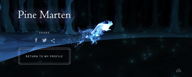 The quiz is actually a pretty fun experience, and is a departure from the “personality quiz” type of questionnaires that make up much of the Pottermore experience. I don’t want to spoil it, but suffice it to say that it definitely involves a happy memory you might have and explores your thoughts around it in a pretty neat way. Keep in mind, though, that the questions are timed, so make sure you’ve got the time and/or privacy needed to complete this quiz in whole before you begin. Oh, and I’d also strongly second their suggestion to use headphones. The soundscape created for the quiz is pretty neat, and helps with the immersion.
