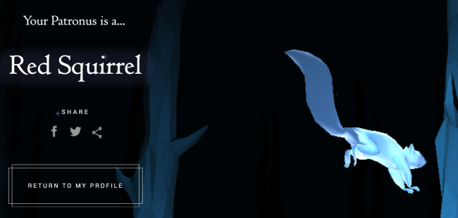 What’s especially interesting to me about this (and really, most of the other Pottermore quizzes) is that you can’t immediately deduce just how you arrived at your answer. This quiz is especially good at obfuscating the process, as you’ll see. This, in some small way, is what I imagine it’s like to experiment with and try out new spells, with the premise here being you’re a wizard who’s trying out the Expecto patronum spell for the first time.