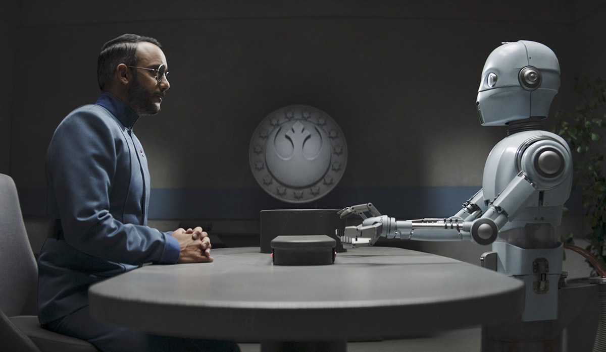 Throughout the episode, we spend most of our time with Dr. Penn Pershing (Omid Abtahi) as he is working his way through the Amnesty Program, a new place within the New Republic that grants former employees of the Empire a second chance to do something good with their lives. Pershing is in charge of destroying old files from the Empire, and when he goes to their new home, he meets someone he recognizes from Moff Gideon’s ship.