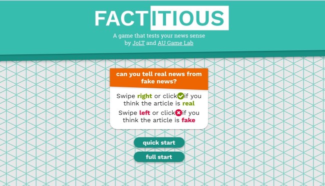 Veteran journalist Maggie Farley created the game Factitious with game designer Bob Hone at American University to test users’ abilities to spot the fake news among the real stories, which can be increasingly difficult when the real news is full of outrageous and terrifying stories that feel like they’ve been ripped from dystopian fiction.