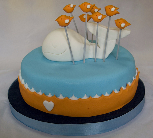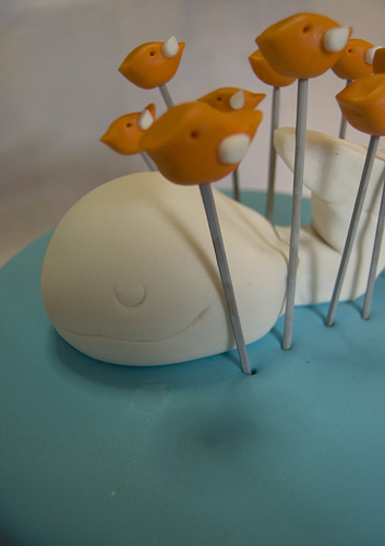We’ve seen 2D Fail Whale cakes before, but this confection by cake designer Mariana Pugliese takes the cake is very impressive. Twitter’s iconic (and increasingly more frequent) aquatic messenger for error alerts is a lot less annoying when he’s being lifted by candied birds from a sea of aqua frosting. Om nom nom.